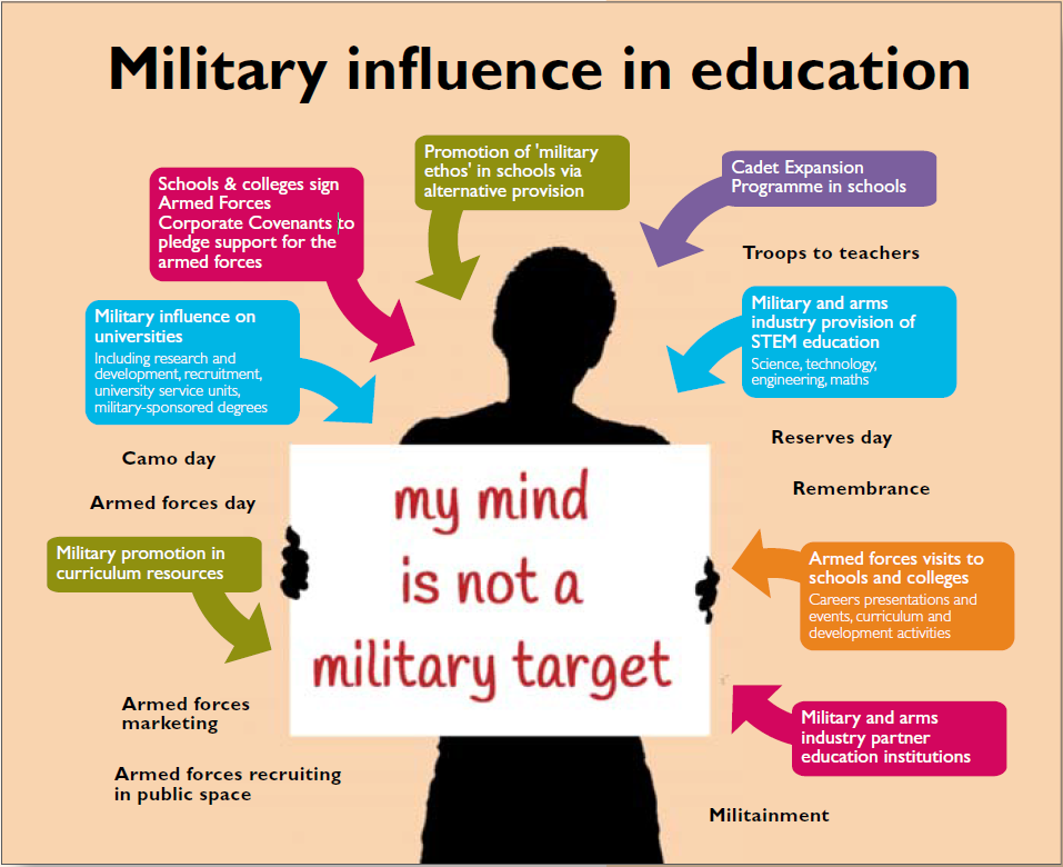 Armed forces activity in schools and colleges takes many forms and is on the increase. There are thousands of military visits to schools for presentations and careers events. The armed forces run personal development activities and offer courses providing a taste of military life.